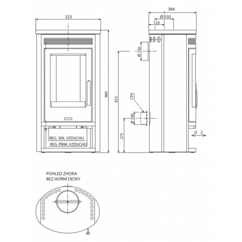 ABX Arktis 4655-4-II, krbová kamna, šedý plech- mastekKrbová kamna na dřevo.