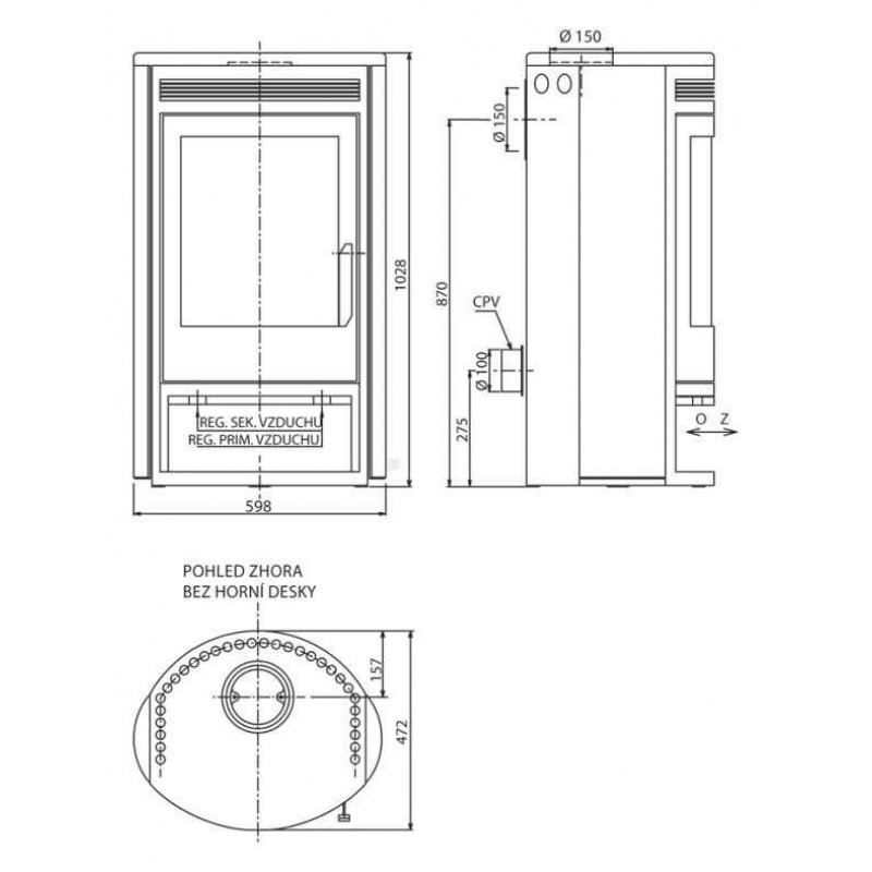Vzdálenost osy horního kouřovodu (mm): 157