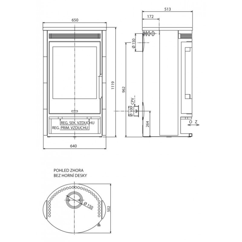 Vzdálenost osy horního kouřovodu (mm): 172