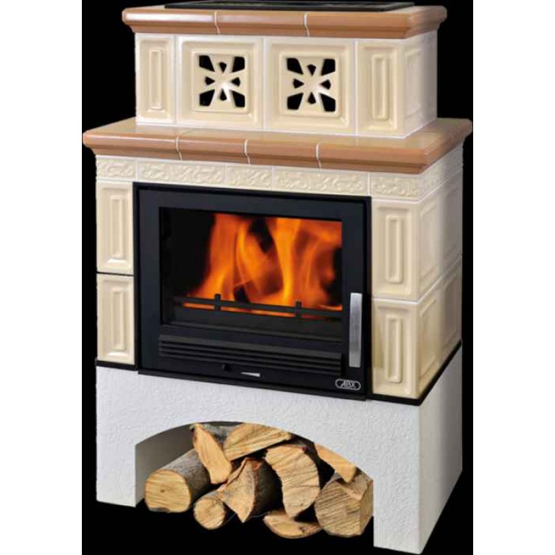 ABX Valencie, kachlová kamna na dřevo s plechovou vložkou, natur/siena