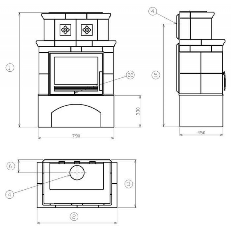 Rozměry topeniště: šířka 49 cm, hloubka 323 cm.