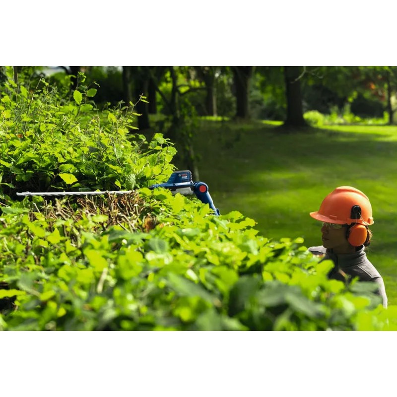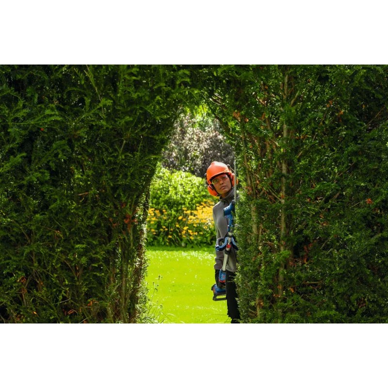 Nůžky na živý plot PRO GHE18V-50FP jsou ideální na stříhání vysokých živých plotů i menších keřů a stromků. Toto nářadí je dostatečně robustní, aby si poradilo se silnějšími větvemi a odolnějšími živými ploty, a je také dostatečně přesné, aby zvládlo i jemnější střihy. Je kompatibilní s profesionálním 18V systémem Bosch a aliancí akumulátorů různých značek AMPShare