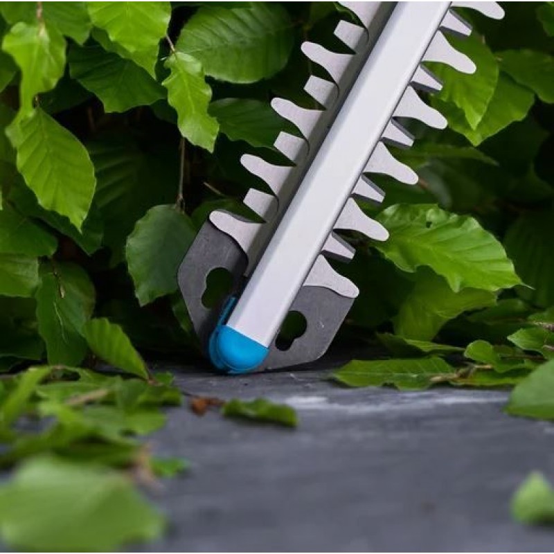 Nůžky na živý plot EasyCut 45/18V solo od společnosti GARDENA nabízejí efektivní a pohodlné stříhání bez kabelů. Díky 45 cm dlouhým oboustranným nožům, které jsou diamantem broušené a laserem řezané, zajišťují přesný střih a pevné uchopení větví bez nutnosti opakovaného řezu.