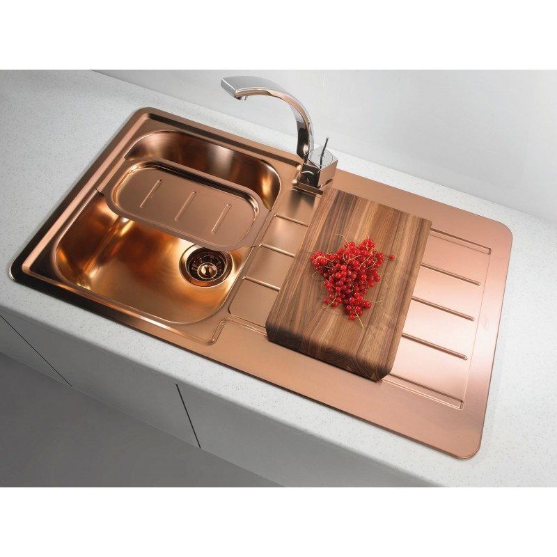 Řady dřezů značky Alveus byly rozšířeny o skupinu kuchyňských dřezů řady Monarch, která je dostupná ve třech rozdílných nerezových provedeních. Ve vaší kuchyni se mohou nyní zářivě vyjímat zlaté, měděné a antracitové varianty. Kovový lesk dřezu dodá vaší kuchyni nádech mystiky a díky speciální technologii akumulace je každý dřez unikátní. Atraktivitu a funkčnost dřezu umocňují doplňky jako dřevěná krájecí deska či nerezová miska.