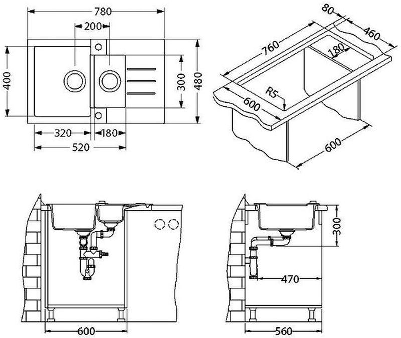 - Rozměr dřezové nádoby: 320 x 400 x 180 mm