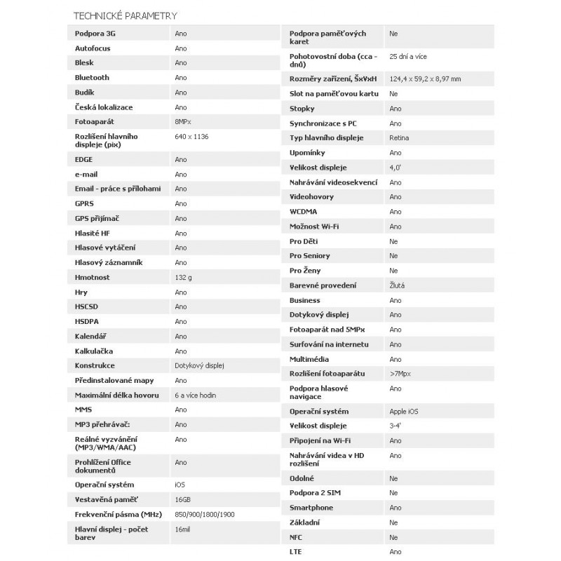 Apple iPhone 5c 16GB YellowiPhone 5C je vyjmečný svými barvami. Stále šíhlý 8.97 mm a lehký s displejem Retina 4", operačním systémem iOS 7, dvoujádrový procesor Apple A6, 8MPx fotoaparát i kamerou natačející ve Full HD kvalitě.