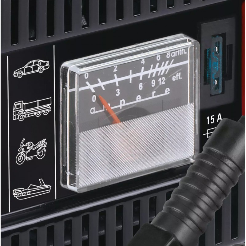 Einhell CC-BC 5 nabíječka baterií s nabíjecím napětím 12 voltů je univerzální a výkonná nabíječka autobaterií pro pohodlné nabíjení baterií osobních automobilů nebo motocyklů. Díky vestavěnému ampérmetru lze snadno odečíst právě dodávaný nabíjecí proud.