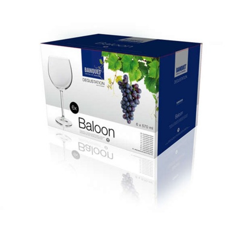 BANQUET Degustation Crystal sklenice na červené víno, 570ml, 6ks, 02B4G0015706 dílná sada sklenic Crystal Banquet červené víno Ballon 570, 6 ks v ozdobném obalu. Velmi kvalitní sklo české výroby, tvrzený okraj, vhodné do gastro provozu. Vhodné jako dárek.