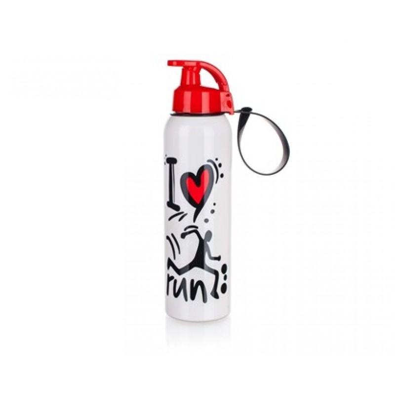 BANQUET Sportovní láhev RUN 700ml 12NN018Sportovní láhev o objemu 700 ml v bílé barvě s dekorem běžce a s praktickým držadlem. Material: tělo PC, víčko PP, držadlo LDPE. Láhev není vhodná pro horké nápoje.
