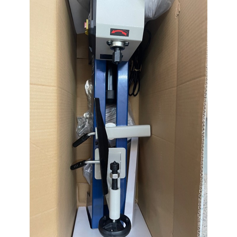 Je ideální pro ty, kterým stačí pracovat s menšími obrobky do délky 50 cm a průměru 35 cm, pro modeláře apod. Stroj má velmi kompaktní rozměry a není problém ho umístit do každé dílny. Stabilitu a minimální vibrace stroje zajišťuje pevné kovové lože s možností uchycení k pracovní desce. Pro možnost práce s různými tvrdostmi dřeva je soustruh vybaven silným a bezúdržbovým indukčním motorem o výkonu 400 W. Rychlost otáčení můžete volit ve 4 stupních a má bohatý rozsah od 890 do 2600 ot./min. Posuvný koník je vyroben z odolné litiny a má pohyblivý a výměnný hrot pro možnost vycentrování obrobku. Opěrka pro nástroje je posuvná a lehce nastavitelná ve více směrech. Stroj se dodává i se dvěma základními dláty a upínací deskou.