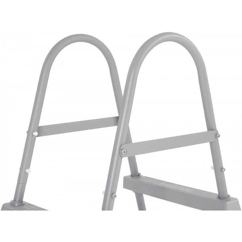 Schůdky k bazénu jsou vyrobeny z kvalitních kovových trubek s plastovými stupni. Stupně schůdků jsou ošetřeny protiskluzovou úpravou, takže se nemusíte obávat nechtěného uklouznutí při vstupu nebo při opouštění bazénu.