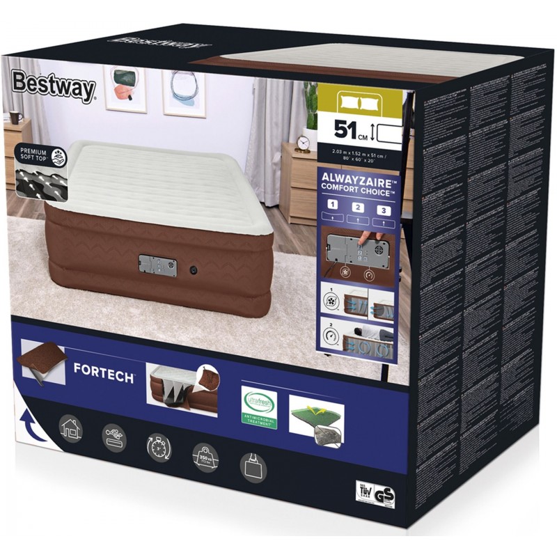 BESTWAY AlwayzAire Fortech Comfort Queen Nafukovací postel, 203 x 152 x 51 cm 69037