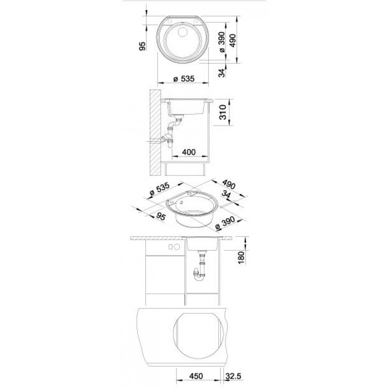 BLANCO Rondoval 45 dřez s excentrem, včetně sifonu, kávová 515665Kulatý dřez s moderními konturami
