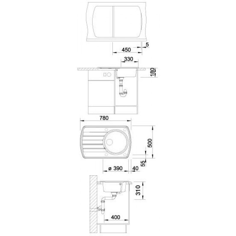 BLANCO Rondoval 45 S dřez s excentrem, včetně sifonu, jasmín 515785