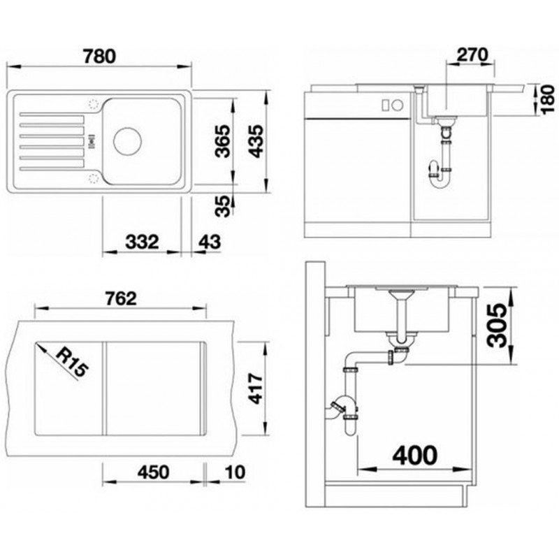 BLANCO SET dřez FAVOS mini Silgranit + dřezová baterie DARAS jasmínVýřez: 762 x 417 mm