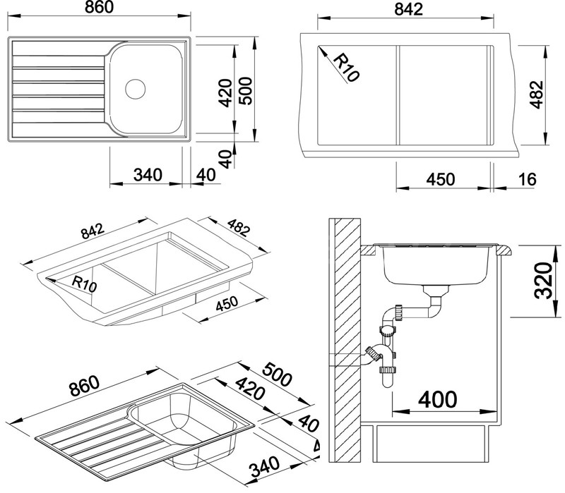 BLANCO set LIVIT 45 S Salto nerez kartáčovaný 860 x 500 mm 514786 + TIVO baterie chrom 517599BLANCO Livit 45 S Salto dřez včetně sifonu, leštěný nerez 514786:
