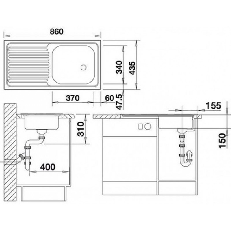 BLANCO set TOP EES přírodní nerez 860 x 435 mm + DARAS baterie chromBLANCO Top EES dřez, včetně sifonu, přírodní nerez: