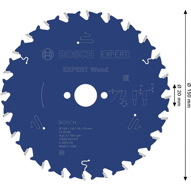 BOSCH Pilový kotouč EXPERT Wood, 150 × 2,6/1,6 × 20 mm, T24 2608644011