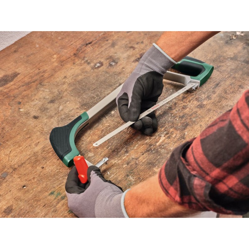 BOSCH Pila na železo 300 mm (1600A02ZA8) je univerzální rámová pila vhodná pro řezání kovu, plastu i dřeva. Je vybavena odolným bi-metalovým listem o délce 300 mm s jemným dělením 24 TPI, který zajišťuje čisté a přesné řezy. Tvrdost řezných zubů v rozmezí 62–68 HRC přispívá k dlouhé životnosti listu i při intenzivním používání.