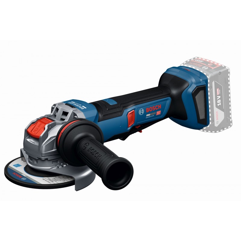 PRO GWX18V-11PS nabízí všestranné funkce ochrany uživatele, včetně funkce KickBack Control, inteligentního brzdového systému, ochrany proti opětovnému spuštění a páčkového spínače. Tato vysoce výkonná akumulátorová bruska s výkonem odpovídajícím síťovému nářadí 1 100 W. Je extrémně robustní a zaručuje dlouhou životnost. PRO GWX18V-11PS je ergonomická a snadno se používá díky dlouhé, štíhlé rukojeti a pohodlné antivibrační rukojeti, která zmírňuje únavu. Je vybavena bezklíčovým upínacím systémem X-LOCK, který zajišťuje rychlou a pohodlnou výměnu příslušenství. A navíc jako první získáš větší flexibilitu díky ergonomické otočné rukojeti, která usnadňuje řezání i broušení.