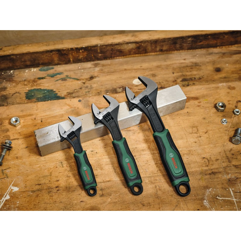 3dílná sada nastavitelných klíčů Bosch nabízí špičkovou flexibilitu a efektivitu pro různé kutilské utahovací práce. Klíče s různými velikostmi a nastavitelnou kapacitou čelistí pokrývají širokou škálu aplikací – od malých úkolů vyžadujících přesnost až po náročné aplikace vyžadující vysoký krouticí moment – šetří tvůj čas a frustraci. Díky robustním nastavovacím kolečkům a metrickým měřítkům lze vysoce kvalitní čelisti hladce nastavit tak, aby vyhovovaly různým velikostem šroubů a matic. Ergonomicky tvarované rukojeti s měkkým úchopem pomáhají snižovat únavu rukou a zlepšují kontrolu nad nářadím. Tyto klíče jsou vyrobeny z tvrdé uhlíkové oceli (46 ±3 HRC) tak, aby vydržely. Tvrdá uhlíková ocel a černá fosfátová povrchová úprava zaručují dlouhou trvanlivost a vysokou odolnost proti korozi. Klíče odpovídají normě ISO 6787. ?