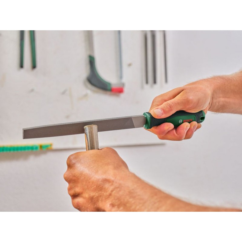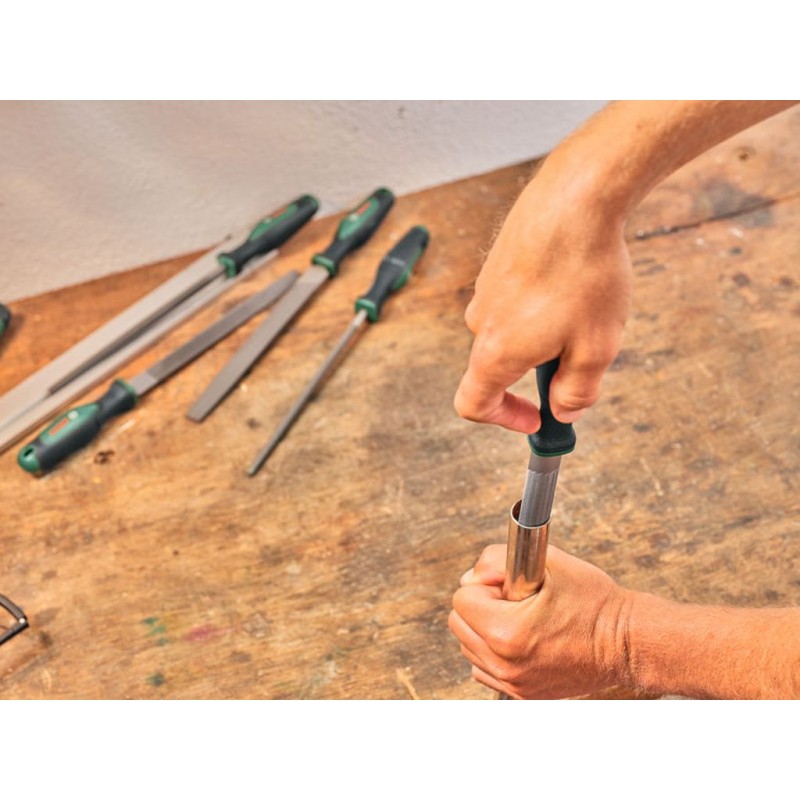 Zlepšete své zkušenosti při práci se dřevem s 5dílnou sadou 200mm pilníků Bosch z uhlíkové oceli. Tato sada obsahuje plochý, půlkulatý, kulatý, čtvercový a trojúhelníkový pilník vyr5obené z odolné uhlíkové oceli, která zajišťuje dlouhou životnost. Středně hrubé tahy pilníků jsou ideální pro odstraňování otřepů a vyhlazování povrchů, zatímco ergonomické měkké rukojeti s vroubkováním pro palec poskytují pohodlí při delším používání. Praktický otvor pro zavěšení umožňuje snadné skladování a organizaci. Rozšiřte svou sbírku nářadí o tuto účinnou a všestrannou sadu pilníků Bosch.