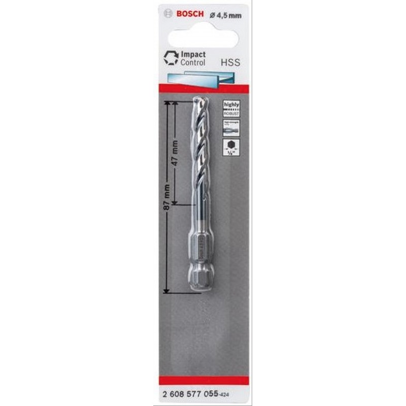 BOSCH Spirálový vrták s šestihrannou stopkou HSS 4,5 mm 4.5 x 47 x 87 mm 2608577055