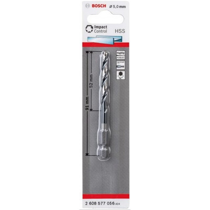 BOSCH Spirálový vrták s šestihrannou stopkou HSS 5,0 mm 5 x 52 x 91 mm 2608577056