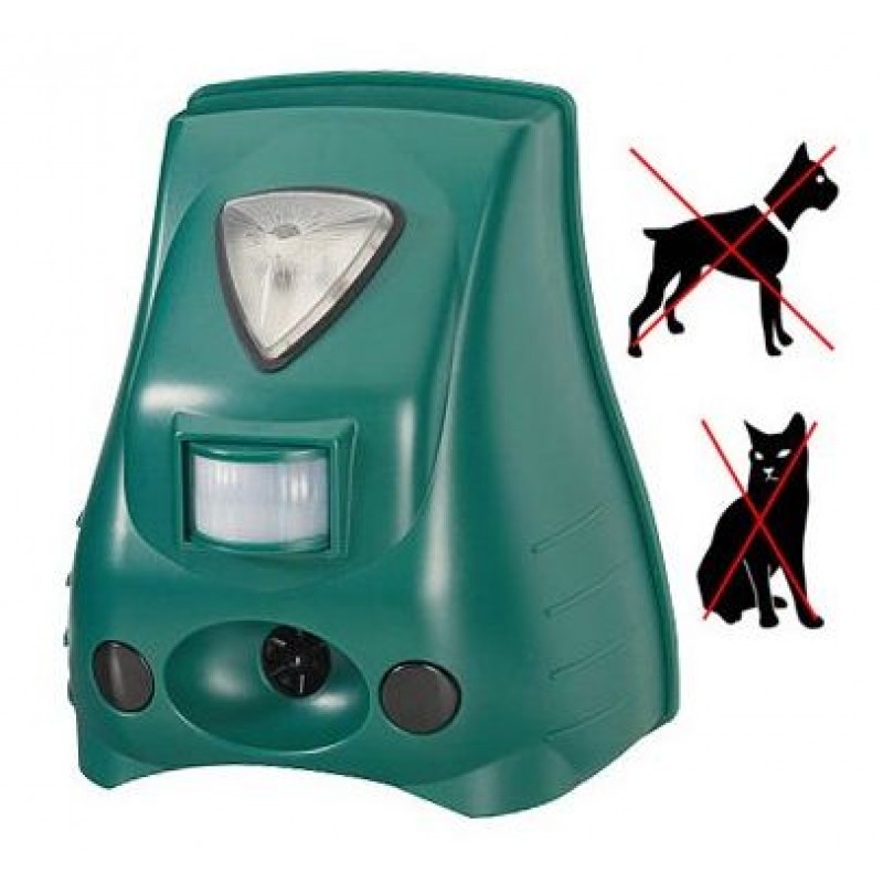 Tento přístroj vyžene psy a kočky z míst, kde nechcete aby se pohybovali. Odpuzovač využívá k odpuzování dvojího systému, a to generování ultrazvukového signálu s proměnným kmitočtem a stroboskopického efektu (velmi rychlé blikání) vestavěných LED diod (slabší obdoba fotografického blesku)