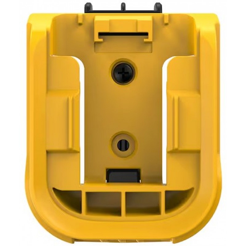 Držák umožňuje více způsobů instalace – jednoduše jej připevníte pomocí západek ke kovové liště DeWALT nebo jej můžete přišroubovat přímo ke zdi v dílně či uvnitř servisního vozidla (upevňovací materiál není součástí balení).