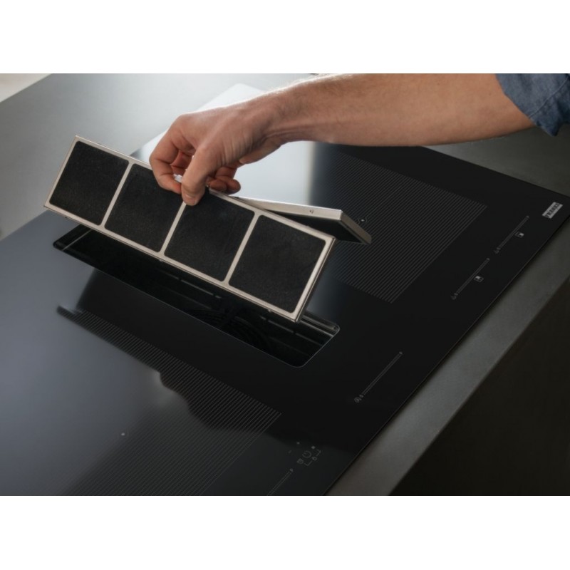 Odsavač par v indukční varné desce Mythos 2Gether Icon Steel. Provedení černé sklo. Energetická třída A+. Odsavač par: Montáž do pracovní desky. Šířka 83 cm. Ovládání: Senzorové. Digitální bílý displej + Dotykový ovladač typu Slide. 9 Stupňů výkonu, 1× Intenzivní stupeň. Automatická aktivace s varnou deskou. Voděodolný motor. Mřížka tepelně odolný kompozit + nerez. Max. výkon 600 m3/h (Norma EN 61591). Součástí odsavače par je vyjímatelný kolektor na tekutinu (V případě náhodné vylití tekutiny do odsavače par). Indukční varná deska: 4 Varné zóny. 2× Flexi zóna. Ovládání: 4 Dotykové ovladače typu Slide. 9 Úrovní ohřevu. Funkce: Rozpouštění. Booster. Stop&Go. Dětský zámek. Časovač 4×. Odsavač par i indukce jsou perfektně integrovány. Odsávání je aktivováno automaticky, jakmile je varná deska v provozu. MODEL POUZE PRO RECIRKULACI.