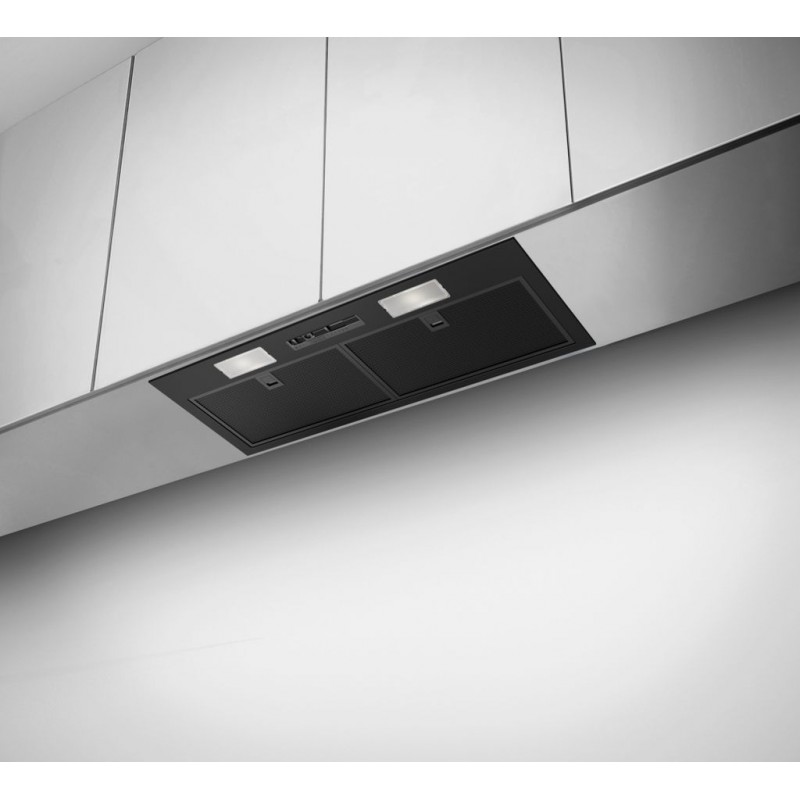 Vestavný odsavač par Box Smart. Provedení černá. Energetická třída C. Posuvné přepínače. 3 Stupně výkonu.