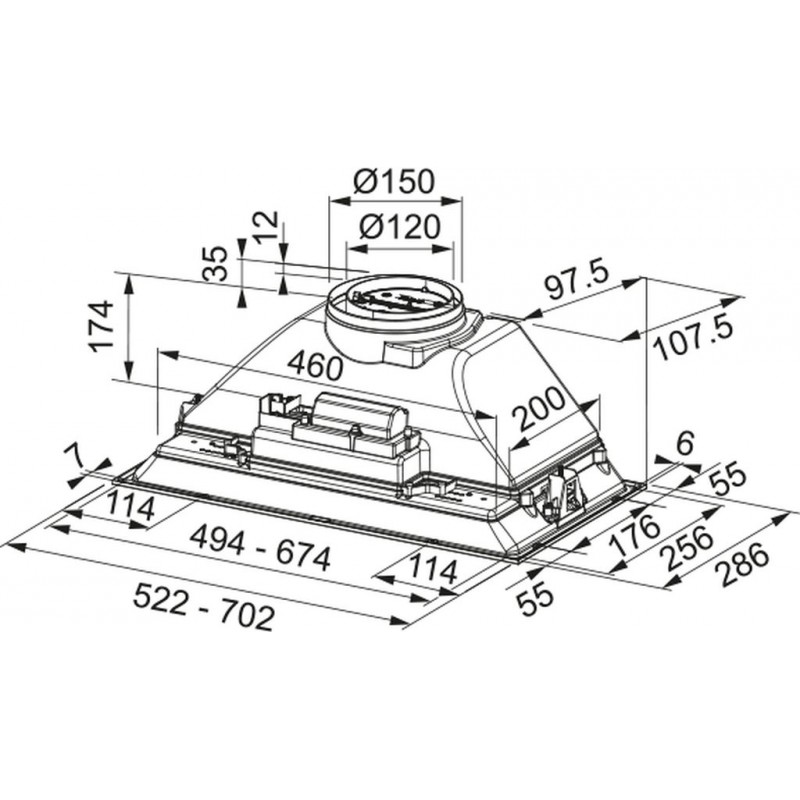 | Průměr vyústění odtahu | 120 |
