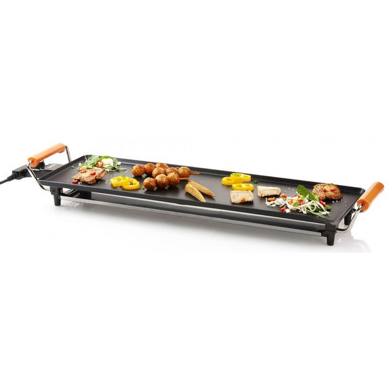 Extra dlouhý stolní gril s hladkou pečící plochou s nepřilnavým povrchem. Na grilu snadno připravíte jakékoliv maso, zeleninu i placky z litého těsta. To vše téměř, nebo úplně bez oleje. Nepřilnavý povrch zajistí, aby se vám nic nepřipálilo a deska šla snadno čistit. Pečící deska z tlakově litého hliníku zaručuje také rovnoměrné pečení po celé své ploše.- Typ grilu: stolní gril teppanyaki