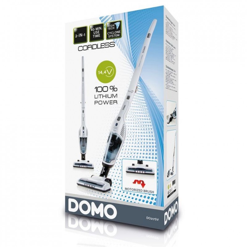 DOMO DO217SV díky oddělitelnému ručnímu vysavači můžete snadno vysát podlahu tak i pohovku. Li-ion baterie 14,4V zaručí dostatečně dlouhou dobu aktivního vysávání. Díky rotačním kartáčům v podlahové hubici dosahuje vynikajících výsledků nejen na tvrdých podlahách, ale i na koberci.