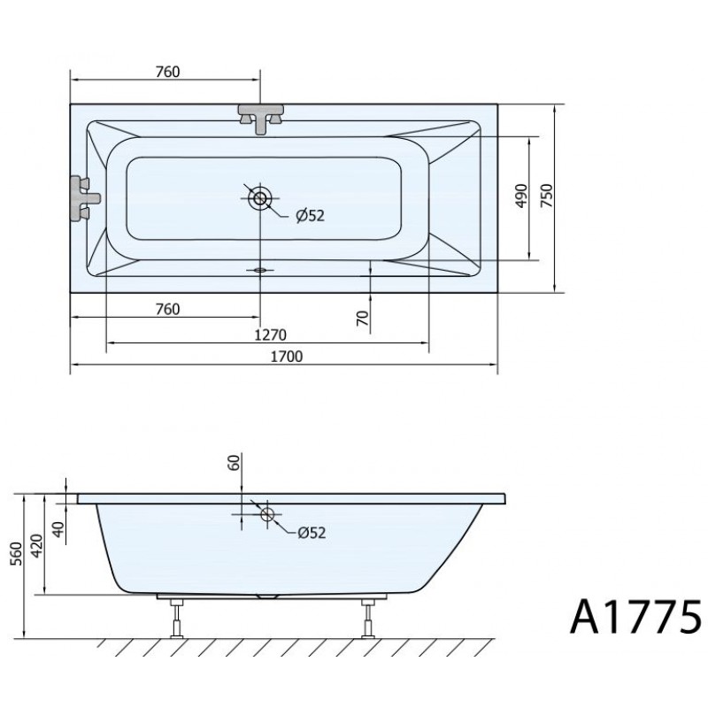 NISA obdélníková vana 170x75x42cm bez nožiček, bíláTechnické údaje