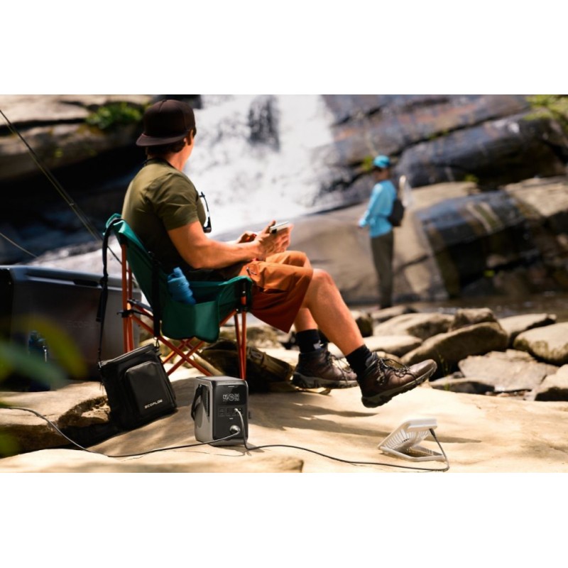 EcoFlow TRAIL 300 je mimořádně skladná a lehká bateriová stanice s kapacitou 288 Wh a celkovým výkonem 300 W. Je optimálním zdrojem energie pro kempování, cestování, rybaření i pro pořádání venkovních akcí. Napájet může světla, kamery, tablety, reproduktory a další zařízení. Zároveň se snadno se přenáší, má odolnou konstrukci a zásluhou velmi kompaktního designu se pohodlně vejde i do batohu. Díky několika výstupním portům a 12V zásuvce může stanice zásobovat energií i více zařízení současně. Dobíjena může být ze sítě, solárními panely i automobilovou zásuvkou.