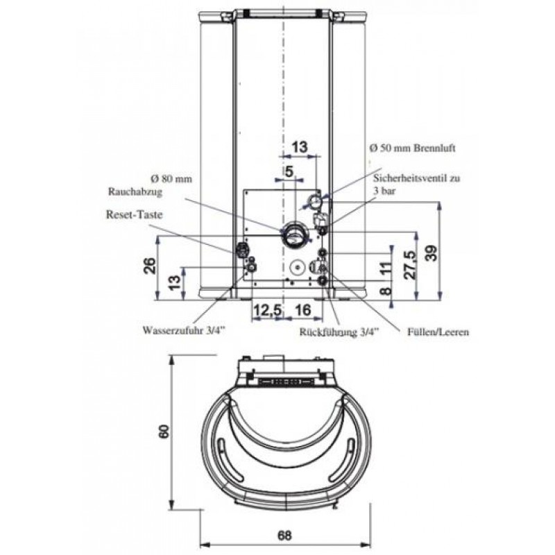- zaústění do komínu max pr. 150 mm