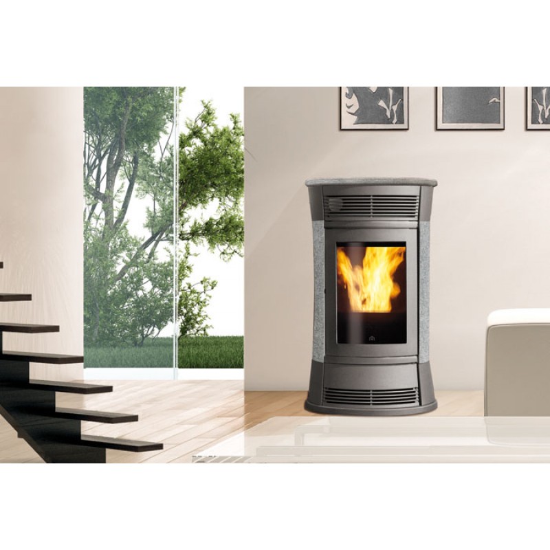 EDILKAMIN TRESOR teplovodní kamna na pelety, 15 kW, šedá 755250Provedení: boky šedá ocel, top a vložky šedá keramika