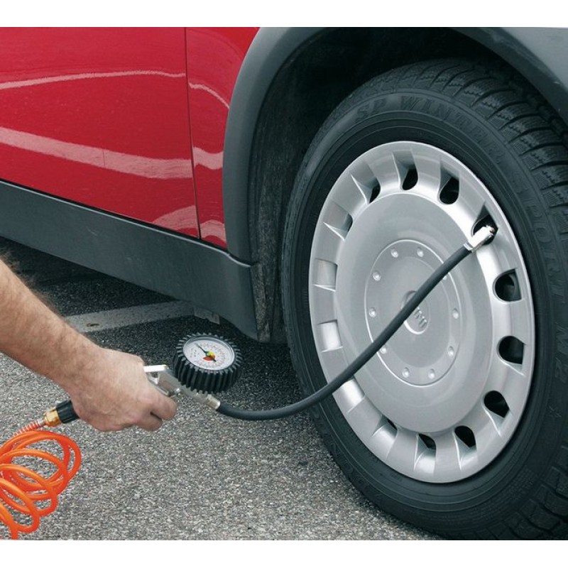 Měřič tlaku v pneumatikách je spolehlivým pomocníkem při huštění pneumatik a ušetří mnoho cest na čerpací stanici. Má velký displej, který usnadňuje odečítání úrovně tlaku. Tlak je zobrazen ve čtyřech různých jednotkách kPa, Bar, psi a kg/cm2. Integrovaný pojistný ventil vám poskytuje přesné ovládání pro snížení příliš vysokého tlaku na požadovanou úroveň.