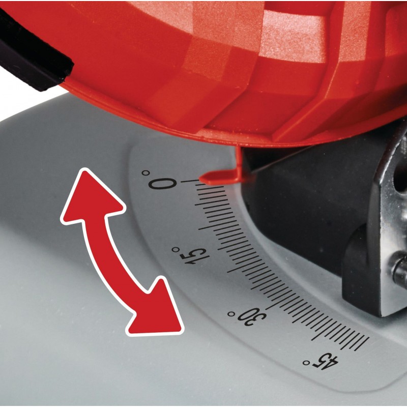 Pomocí úhlové stupnice integrované do stojanu lze nastavit úhel pro přesné pokosové řezy.