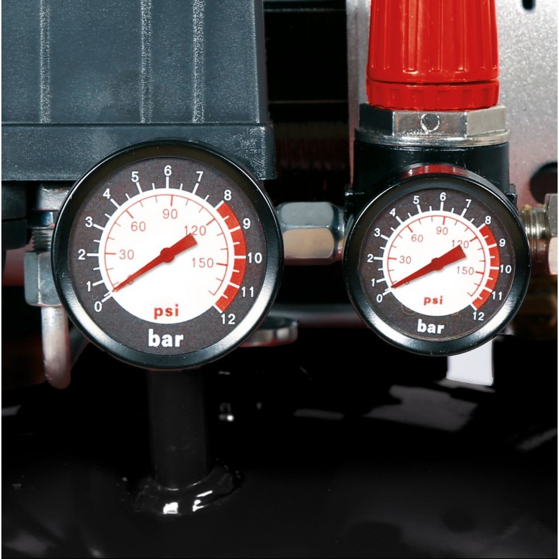Tichý kompresor Einhell TE-AC 135/24 Silent Plus Einhell Expert je multifunkční stroj, který by neměl chybět v žádné garáži nebo dílně. Jednou z vynikajících vlastností tohoto kompresoru je, že generuje méně hluku než 65 dB. Redukce hluku, ale není vykoupena výkonem kompresoru, což dokazuje motor o výkonu 750 W. Tento kompresor je mnohem tišší než standardní kompresory se srovnatelným výkonem. Motor je bezolejový a díky výpustné zátce je velmi snadný na údržbu. 24 litrová nádrž poskytuje dostatek vzduchu na běžné používání a se správným náčiním můžete kompresor použít k nástřiku barev či laků, nebo k aplikaci konzervačního oleje na dřevo buď selektivně, nebo plošně. Tento všestranný pomocník bez námahy napumpuje pneumatiky jak u aut, motocyklů i jízdních kol, stejně tak míče a nafukovací matrace. Einhell je přesvědčen o kvalitě a nabízí desetiletou záruku na korozi nádrže. K dispozici je redukční ventil pro regulaci tlaku až do 8 barů. Zahrnut je manometr a rychlospojka pro regulovaný pracovní tlak a další manometr pro neregulovaný tlak. Bezpečnostní ventil pro ochranu uživatele. Po pár úkonech je kompresor připraven pro snadnou přepravu, zatímco stabilita během používání je zajištěna nohami pohlcující vibrace. Kompaktní konstrukce umožňuje skladování v minimálním prostoru