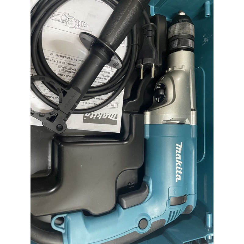 Příklepová vrtačka s příkonem 1010 W má dvourychlostní převodovku s elektronickou regulací a aretací. Skříň převodovky je vyrobena z robustního hliníkového tlakového odlitku. Určitě oceníte výstražnou kontrolku při přetížení a kontrolku závady spínače i kabelu. Regulační kolečko vám zase poslouží k nastavení konstantních otáček při zatížení a k pozvolnému rozběhu. Kluzná třecí spojka zajišťuje bezpečnost provozu. Vás ochrání před úrazem, a vrtačku zase ochraňuje při zablokování. Součástí dodávky je boční rukojeť, hloubkový doraz, rychlosklíčidlo 1,5 - 13 mm a kufr. Usnadněte si práci při vrtání s touto praktickou vrtačkou od známé značky Makita.