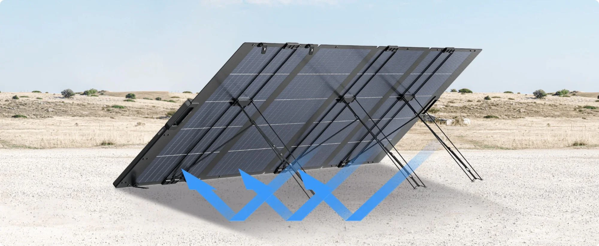 Svou konstrukcí přináší tento panel další možnosti, jak získat maximum energie ze slunečního záření. Obsahuje totiž vestavěný ukazatel úhlu dopadu slunečních paprsků a integrovaný stojan, kterým ho lze naklápět podle aktuální pozice slunce. Je možné ho snadno připojit například k bateriové stanici EcoFlow a maximálně využít energii slunečních dnů.