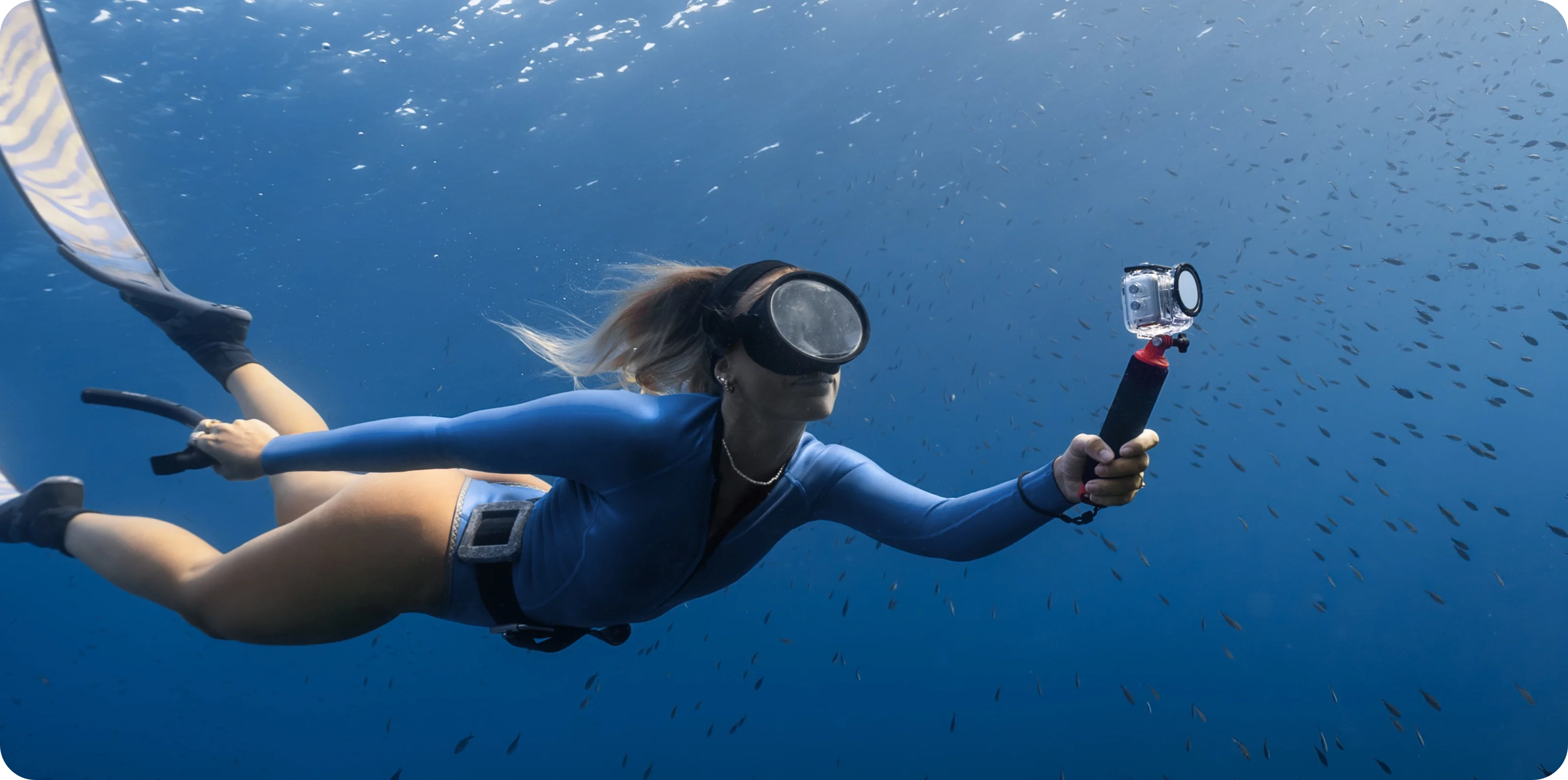 Kamera se nabije z nuly na 80 % přibližně za 12 minut, takže natáčení nebrání žádná prodleva. Díky propojení s Action Podem lze kameru ovládat na dálku a tvořit ještě kreativnější záběry.