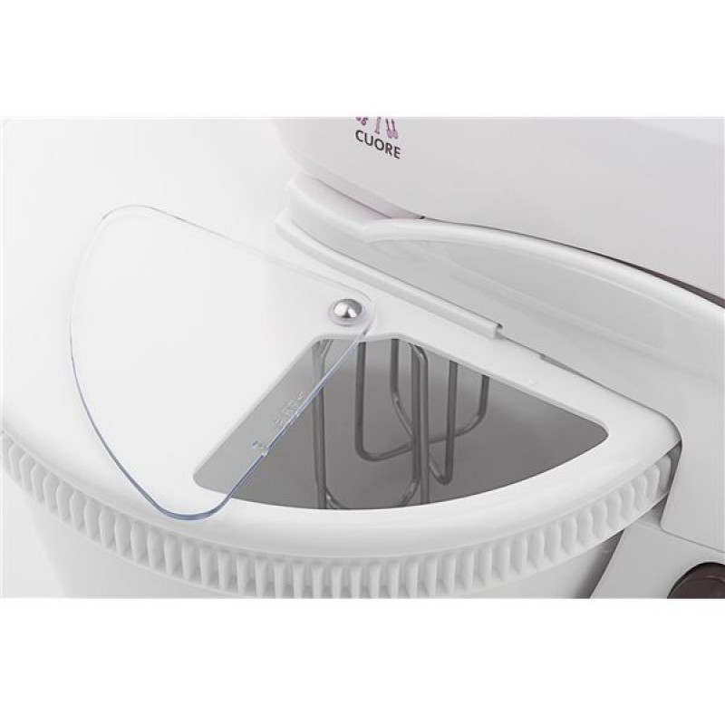 Cuore je moderní šlehač s elegantním designem. Má rotační mísu a stojan, který zajistí velmi pohodlné použití. Cuore se dobře drží díky ergonomické rukojeti a zůstává ve stabilní poloze právě díky stojanu s protiskluzovými nožkami.