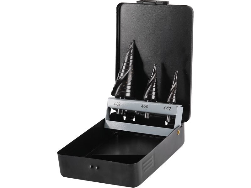 EXTOL CRAFT vrtáky stupňovité, sada 3ks, s lamačem třísek a spirálovou drážkou 200924-12/1mm