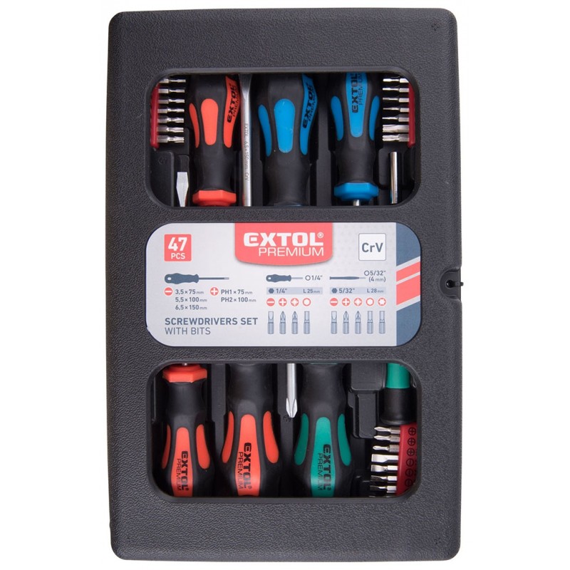 EXTOL PREMIUM šroubováky a hroty sada 47ks , 1/4" hroty a 4mm mini hroty, CrV 8819258