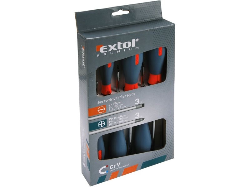 EXTOL PREMIUM šroubováky, sada 6ks, 3x (-), 3xPH 8819215(-) 3x75mm