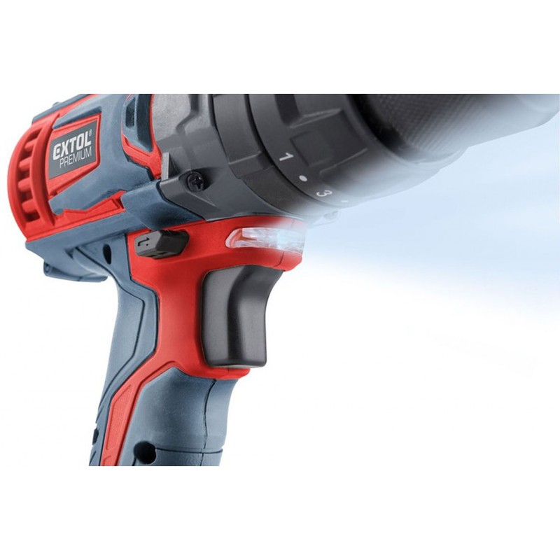EXTOL PREMIUM Aku vrtací šroubovák s příklepem SHARE20V, 20V Li-ion, bez baterie a nabíječky 8891805